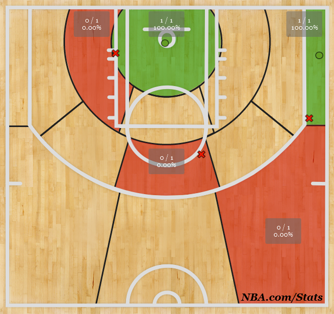 Jimmer’s first basket of the game came on an open corner three. In the right corner he is now shooting 4-4. Both corners combined (the short threes) he is shooting 7-8.