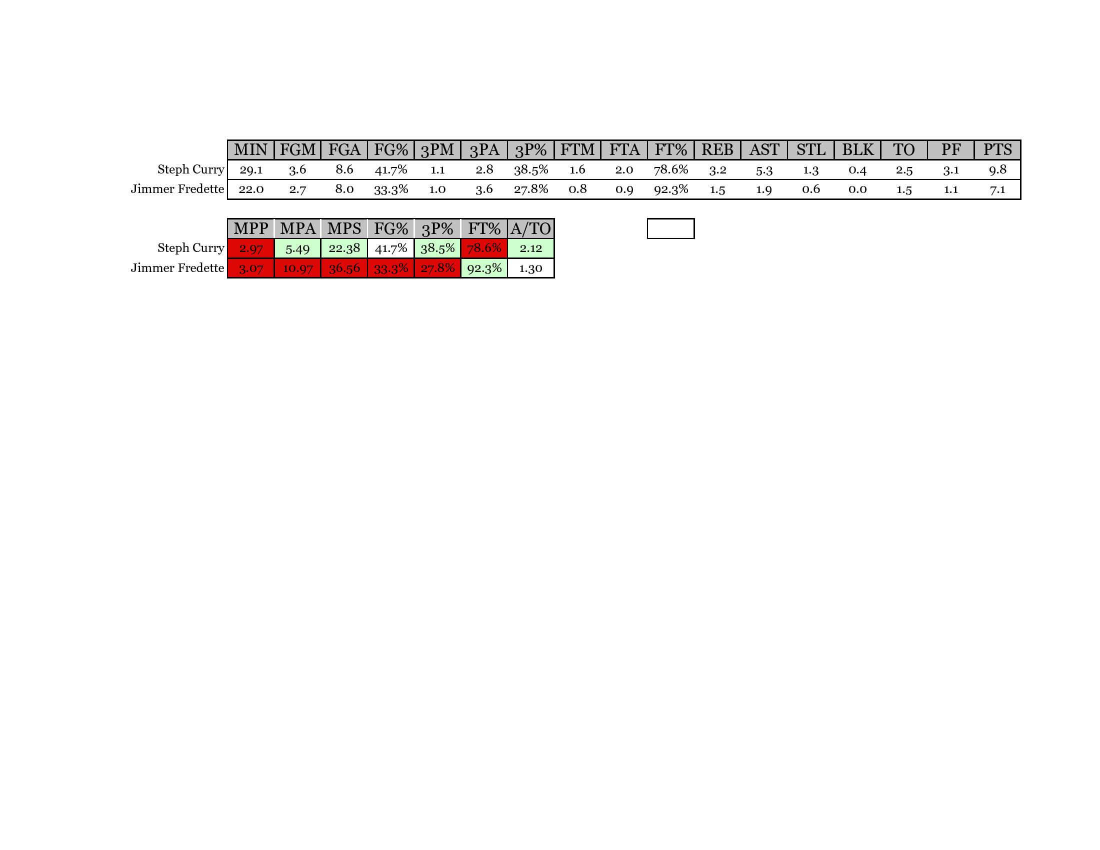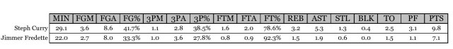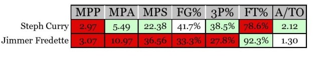 Below I have included a comparison of the 14 games that Steph Curry played in November of his rookie year to the first 15 games of Jimmer’s career: