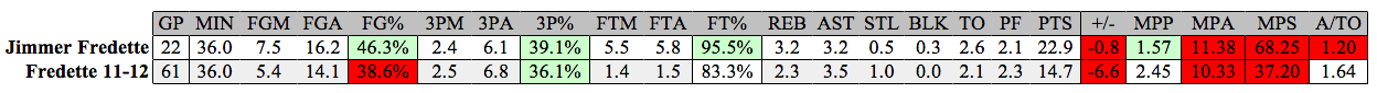 Looking at those basic stats it is easy to see where Jimmer has improved his game the most: shooting and scoring.